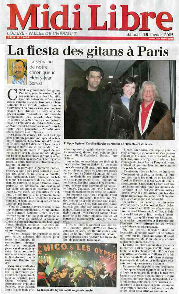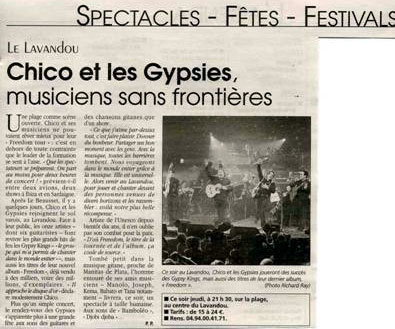 Hier fondateur des Gypsy Kings , devenu aujourd'hui envoyé spécial de l'UNESCO pour la paix, après avoir créé sa nouvelle formation Chico and the Gypsies , Chico Bouchiki, alias Chico , n'est pas un gitan comme on le croyait,